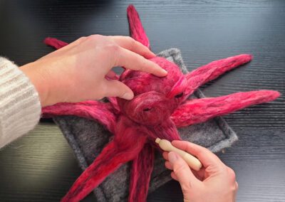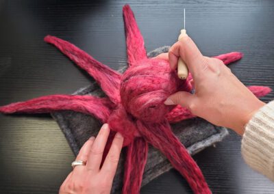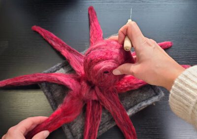 Welcome to the needle felting lesson: 3D Octopus. Together we’ll work through the process of needle felting a 3D octopus with two options for the eyes and eight tentacles. This lesson was originally recorded in February 2025.