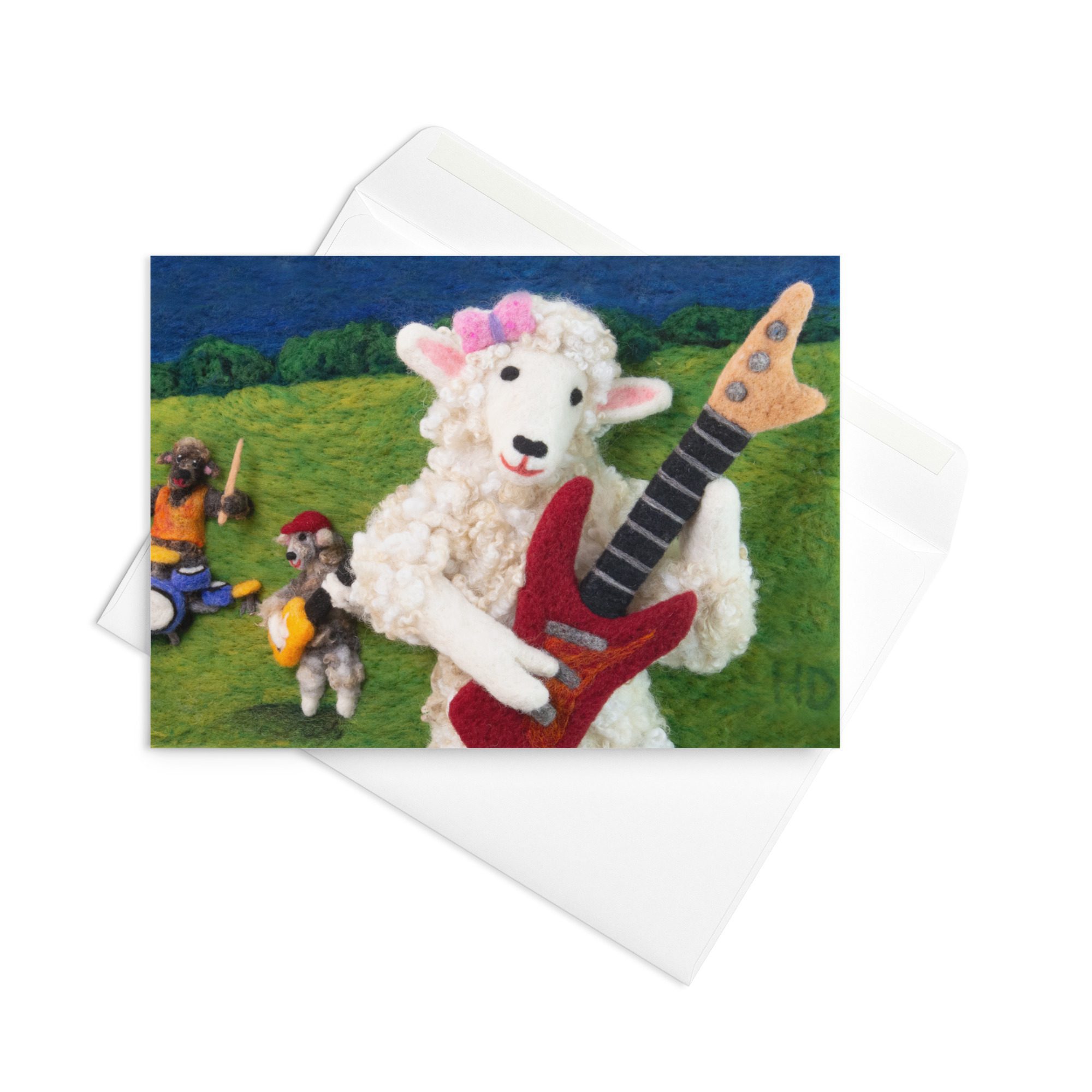 Celebrate music and handmade art with this blank greeting card featuring Leona’s Guitar, a colorful felted illustration by Maine fiber artist Hillary Dow. This art greeting card is printed in rich, vibrant color on thick premium paperboard and is available in small, medium, and large sizes. Perfect for music-themed gifts, guitar lovers, birthdays, thank you notes, everyday stationery, and meaningful handwritten messages, it is both a beautiful card and a small piece of art. Each card comes with a complimentary envelope for easy mailing or gifting.